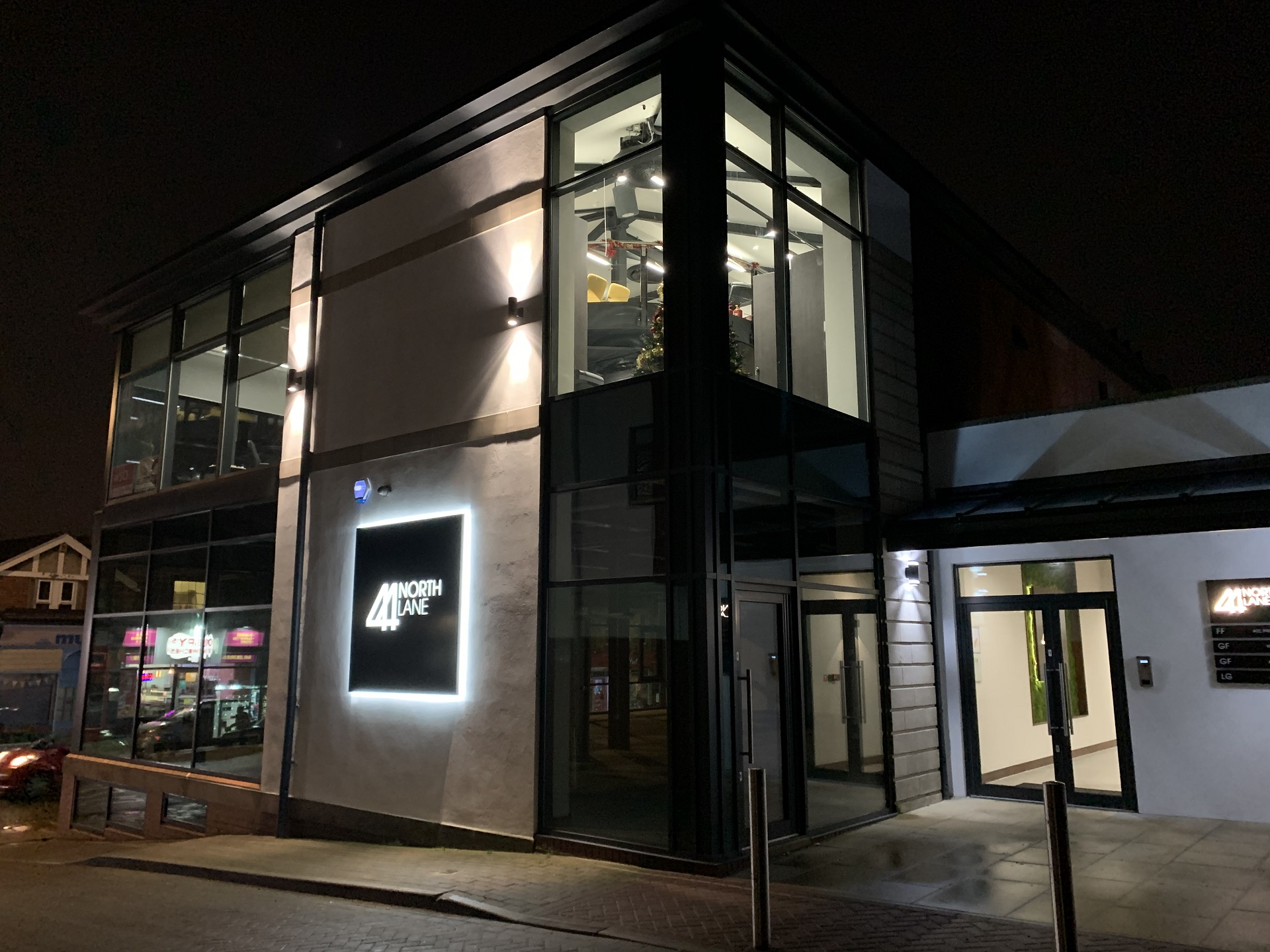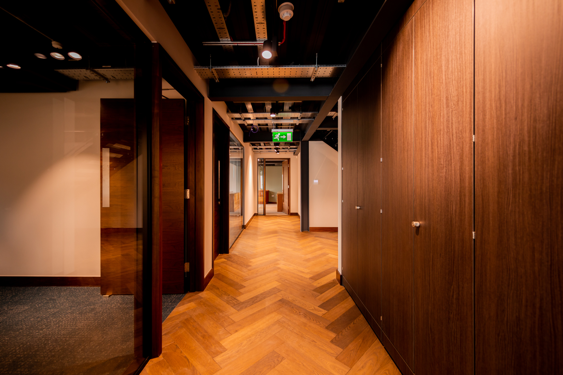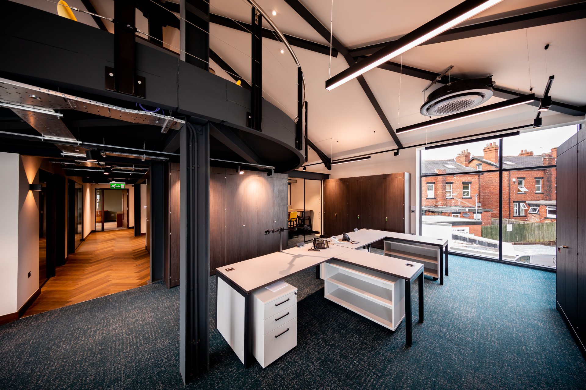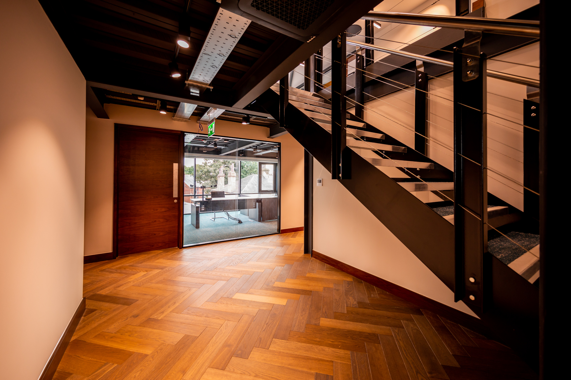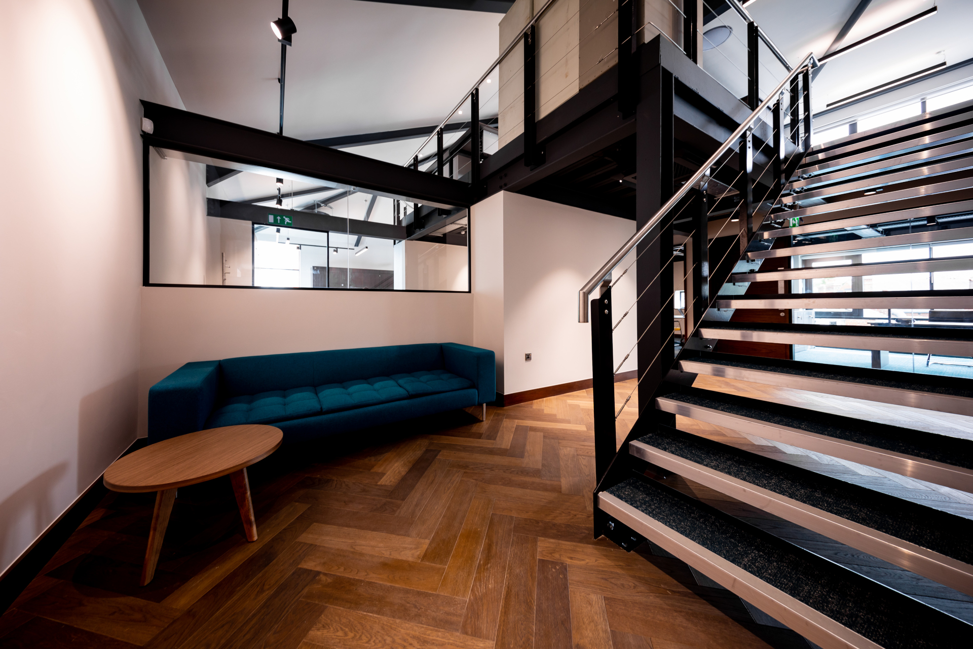 extension. The design followed a contemporary industrial office theme with exposed services and building